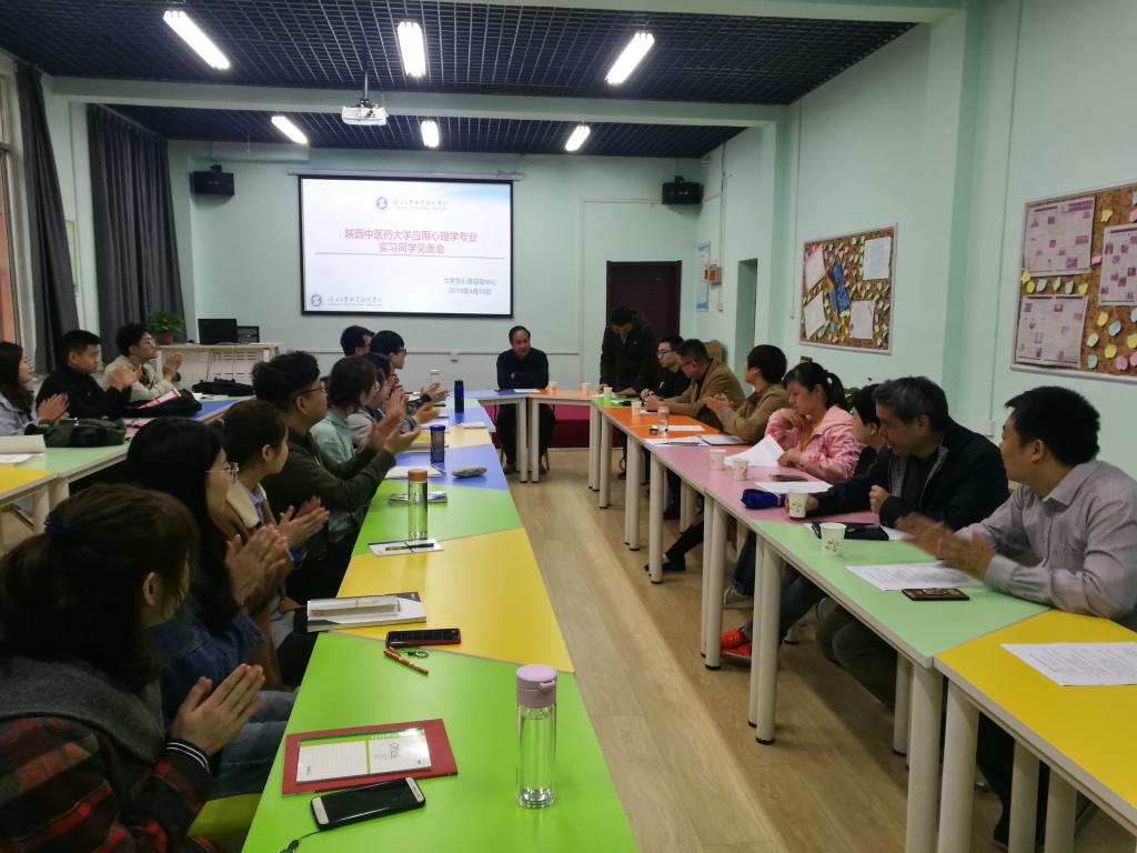 4月10日上午,我院学生处大学生心理咨询中心组织的陕西中医药大学应用心理学专业学生实习工作见面会在格物楼一楼心理咨询中心举行。大学生心理咨询中心老师、二级学院学工办主任及15名陕西中医药大学应用心理学专业实习学生参加了本次活动,见面会由心理咨询中心主任耿丽主持。