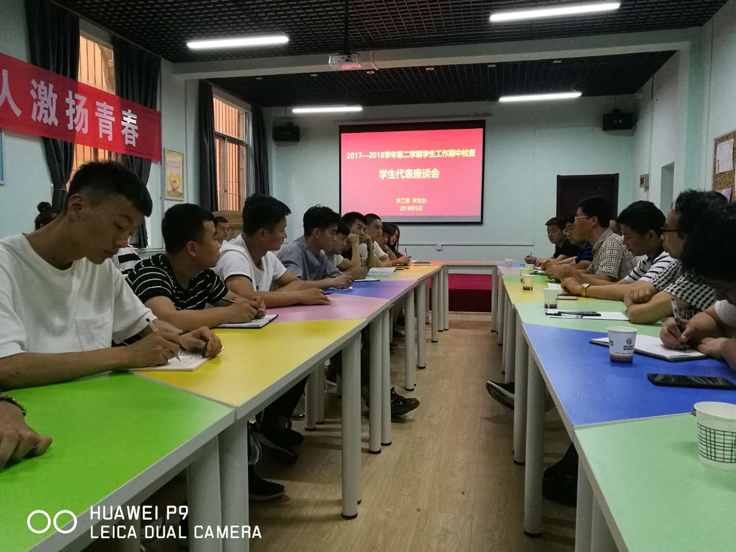 5月17日下午,2017-2018学年第二学期学生工作期中检查学生代表座谈会在我院新建成的大学生心理咨询中心团体辅导室召开。学工部部长、学生处处长王超联,副处长张翔、学生处相关科室负责人、学生干部及代表30余人参加了会议。
