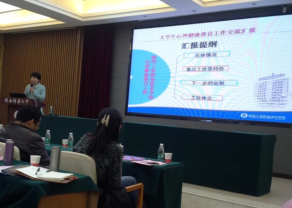 ,2014年全省高校心理健康教育工作总结交流会在陕西师范大学举行,省委高教工委学工部部长田民正、陕西师范大学党委学工部部长刘建军及全省54所高校的84名主管学生心理健康教育的领导和老师参加了会议。会上,我院等四所高校作交流发言。