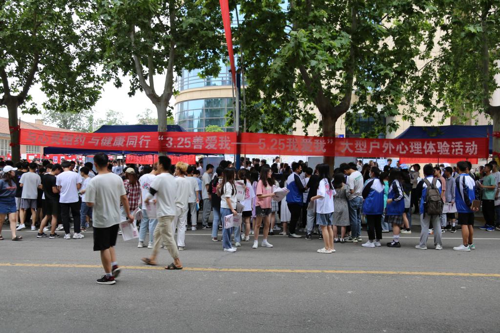 为引导、号召学生关注自身心理健康、提升学生心理素质,5月25日下午学生处心理咨询中心主办的“与心灵相约,与健康同行——3.25善爱我-5.25我爱我大型户外心理体验活动”在精艺楼前举行。现场设有签名区、幸福分享区、心灵氧吧游戏区、心灵探索区等精彩活动区域,全院千余名师生积极参与体验。学院党委书记惠朝阳、党委副书记贺天柱、副院长梅创社以及学生处领导莅临现场观看指导。