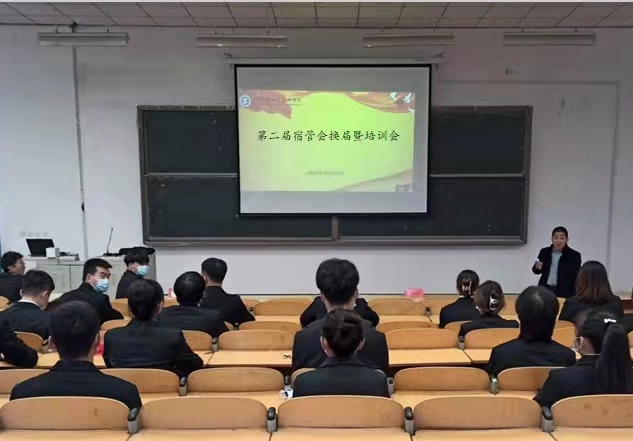 11月15日下午,第二届学生宿舍自治管理委员会换届暨宿管学生干部队伍培训大会在崇文西楼301教室举行。学生处副处长杨修国,公寓管理中心负责人,宿管会全体干部,各二级学院学生会主席和生活部部长,相关学生组织代表参加了会议。
