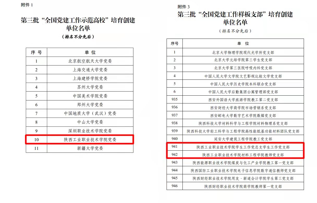 日前,教育部公布第三批全国党建工作示范高校、标杆院系、样板支部培育创建单位名单,我校党委成功入选“全国党建工作示范高校”培育创建单位,学生工作党总支学生工作党支部成功入选“全国党建工作样板支部”培育创建单位。