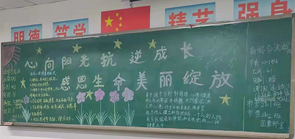 随着我校第七届“阳光护航”心理育人宣传季实践活动帷幕的拉开,2022年4月6日晚,我校开展了以“心向阳光 抗逆成长,感恩生命 美丽绽放”为主题的心理健康主题班会。