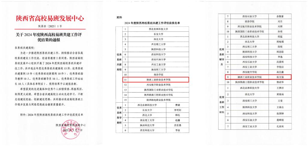 近日,陕西高校网络思想政治工作中心公布了2024年度陕西高校易班评优结果。我校被评为2024年度优秀易班共建高校,航空工程学院张文 强老师被评为优秀易班辅导员。