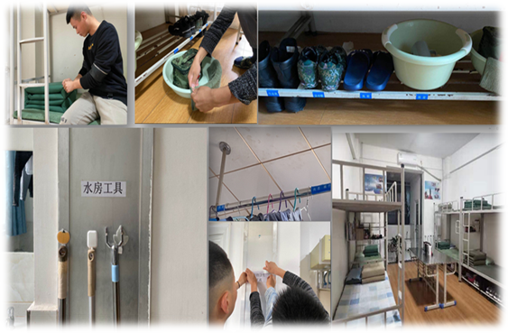 “战旗示范班”成员,采取半军事化管理,将内务整理和欧姆龙5S管理相结合,对宿舍的内务进行规范化、标准化,内务建设已经成为学校的标杆,吸引全校学生参观效仿和积极学习。