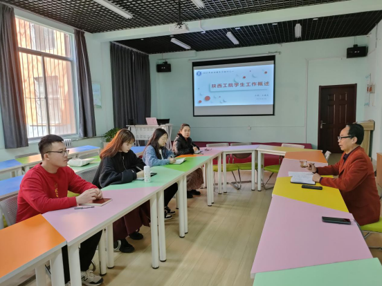 3月23日下午于格物楼心理团辅室,培训在王康虎老师讲授第一讲《陕西工业职业技术学院学生工作概述》中正式拉开了序幕。本次培训中,王康虎老师将陕西工院学工部的基本架构进行了介绍,对学生工作包括学生思想、政治、道德教育、心理辅导、就业辅导、职业规划和能力培养等方面进行了概述。