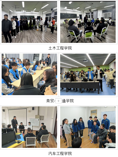 11月下旬,心理咨询中心组织了教师团体辅导技能培训,旨在增强教师队伍的心理辅导能力,为后续的班级心理辅导活动打下坚实基础。依托第一阶段培训成果,各二级学院积极响应,由班主任组织在班级内部开展了一系列丰富多彩的团体辅导活动。这些活动形式多样,既有增强团队凝聚力的游戏,也有情绪管理和压力释放的工作坊,有效帮助新生快速融入集体,提升自我认知与调节能力,为大学生活奠定了良好的心理基础。